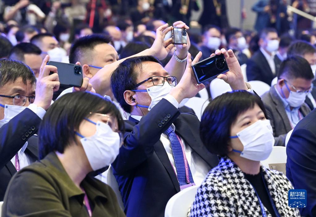 11月9日,参会者在开幕式现场拍照。当日,2022年世界互联网大会乌镇峰会在浙江乌镇开幕。新华社记者 李贺 摄