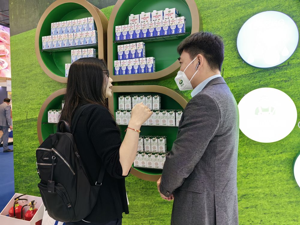 新西兰乳业品牌荷仕兰在本届进博会全球首发的一款零乳糖奶粉引起了王艳的兴趣。“中国有大量乳糖不耐受人群,这款新品主打的零乳糖、有机、高钙等概念,比较符合我对成人奶粉的采购预期。”