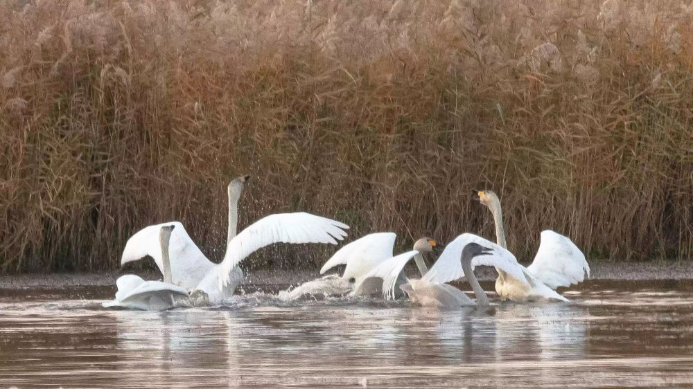 国家二级保护动物小天鹅在湖泊湿地的芦苇丛中休憩。(银川市湿地保护中心供图)