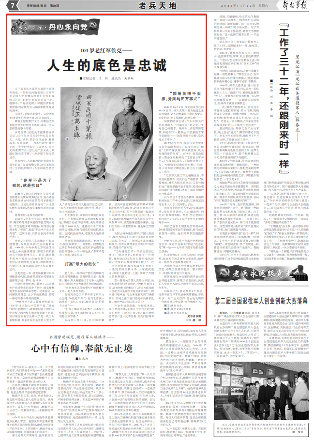 民族独立、人民解放的宏大叙事与勇士的奋斗足迹纵横交错,老红军侯克用一生的经历昭示:人生的底色是忠诚。