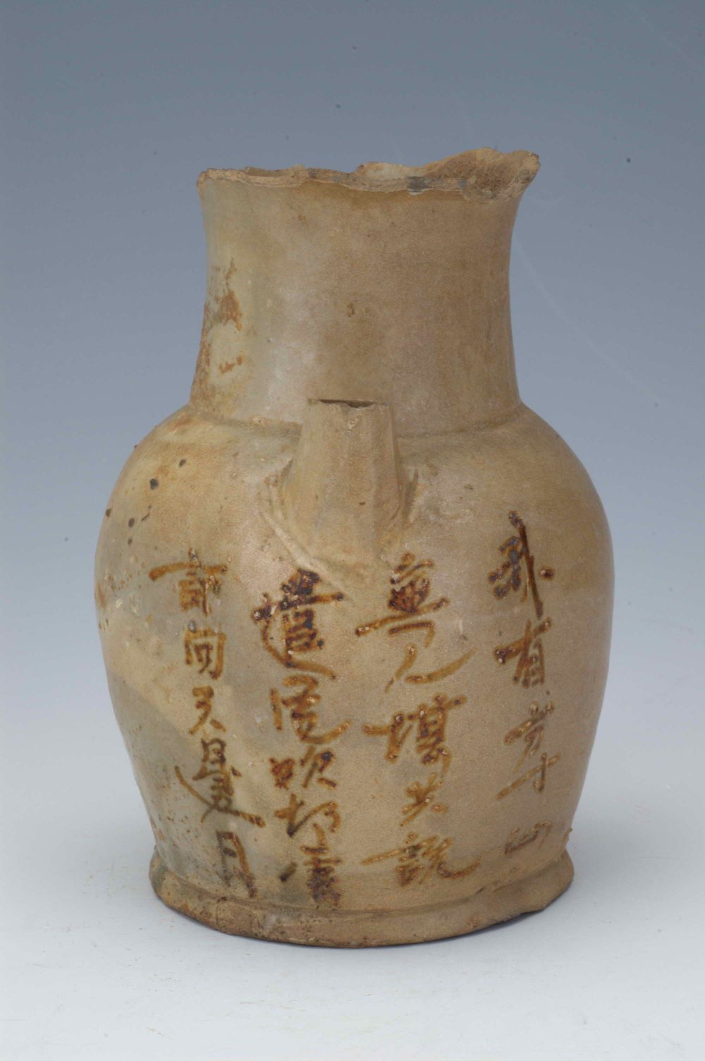 青釉褐彩“自入新峰市”诗文壶。长沙博物馆供图