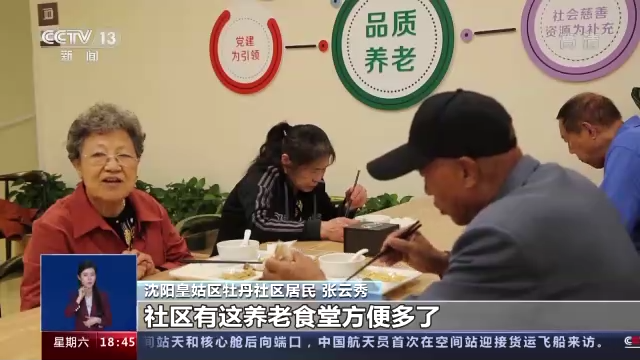 沈阳皇姑区牡丹社区居民 张云秀:社区有这养老食堂方便多了,对咱们老年人而言,自己不愿意做了,上这来吃现成的,一荤两素还一个汤,还不贵。
