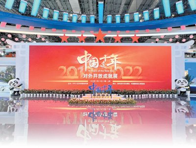 本届进博会新设“中国这十年——对外开放成就展”综合展示区。记者王迪/摄