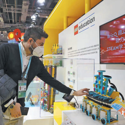 11月7日,进博会乐高展台吸引参观者前来体验。记者陈尚文/摄