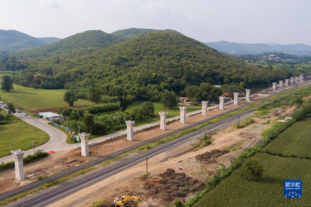 这是位于泰国呵叻的中泰铁路建设现场(2022年9月7日摄,无人机照片)。新华社记者林昊/摄