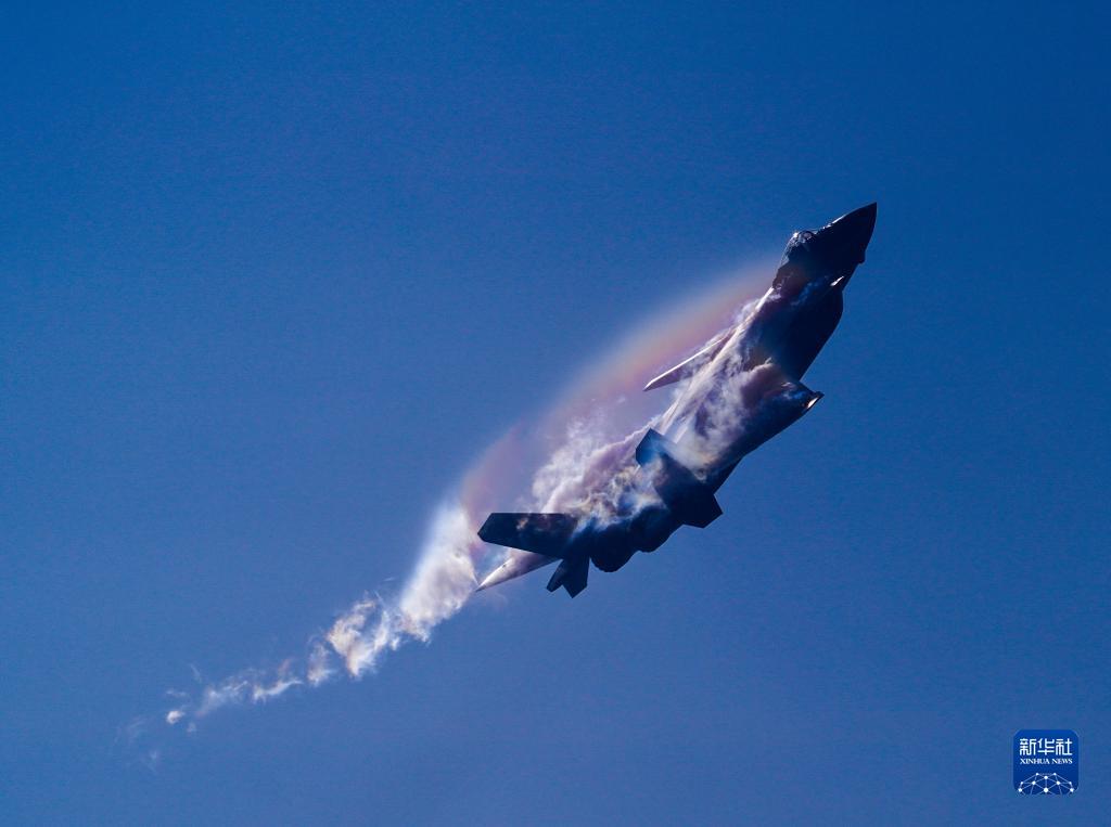 11月13日,第十四届中国航展闭幕当天,空军歼-20战机进行飞行展示。新华社发(余红春 摄)