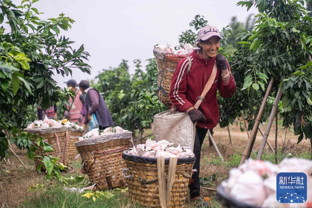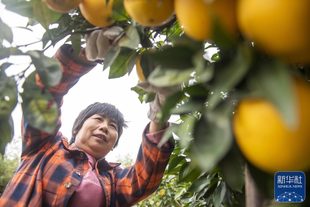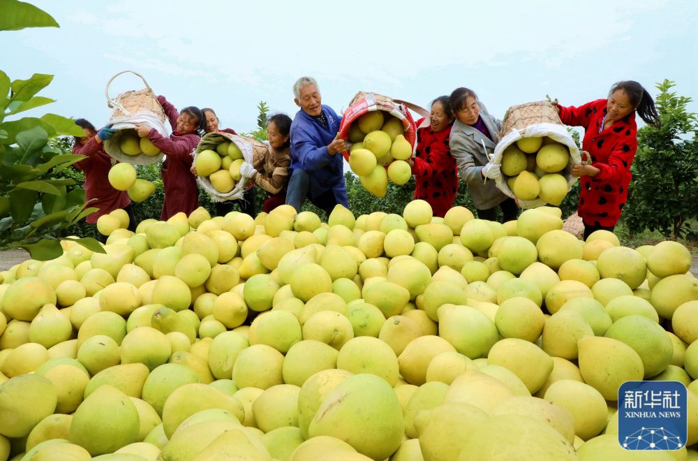 11月14日,四川省眉山市仁寿县汪洋镇五爱村蜜柚种植基地,村民在搬运蜜柚。新华社发(潘建勇 摄)