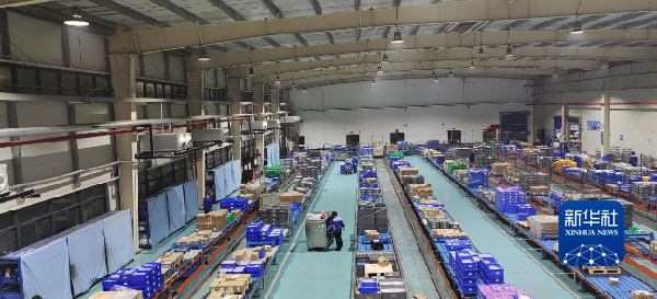 新华社重庆11月13日电 记者赵佳乐 在位于重庆两江新区的重庆长安民生物流股份有限公司,工人们将一批批零件卸车、拆装。经过检查确认后,这些零件将被分类配送至长安主机厂生产线进行装配。