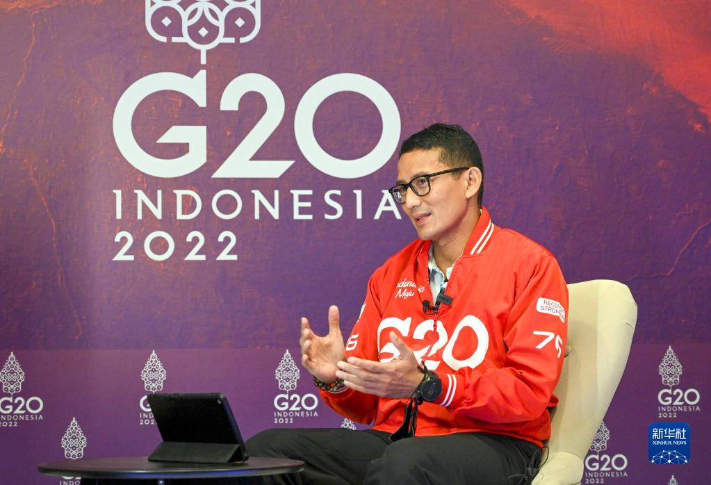 11月15日,印度尼西亚旅游和创意经济部长桑迪亚加·乌诺在巴厘岛接受新华社记者专访。新华社发(祖卡南摄)