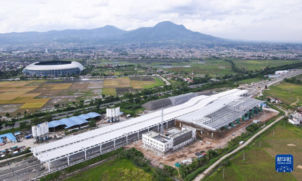 这是2022年10月27日在印度尼西亚万隆拍摄的建设中的雅万高铁德卡鲁尔车站(无人机照片)。新华社记者 徐钦 摄