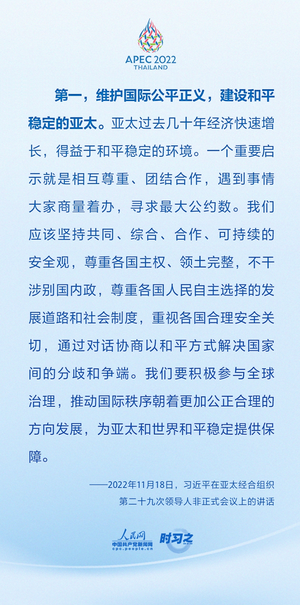 当地时间11月18日上午,亚太经合组织第二十九次领导人非正式会议在泰国曼谷国家会议中心举行。国家主席习近平出席会议并发表题为《团结合作勇担责任 构建亚太命运共同体》的重要讲话。