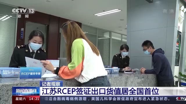 江苏是外贸大省,据南京海关和江苏省贸促会统计,今年前10个月,江苏省RCEP签证出口货值419.98亿元,居全国首位。