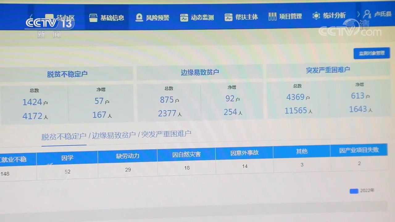 在各类人群中,因灾、因病等突发状况陷入困境的人是最需要帮助的群体。去年年底,村民王黑女家出现变故后,她第一时间就被监测系统发现了。