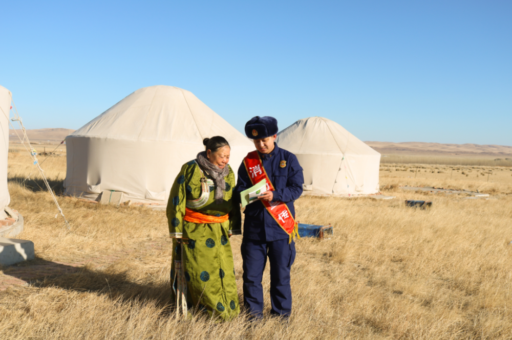每逢入冬,牧民家家户户都会堆起草垛,稍有不慎,就会引发草原火灾。地广人稀的环境加上语言不通,制约着消防工作的开展,哈斯其其格知道后主动请缨:“只要我在,你就带上我和你们一起去。” 就这样,哈斯其其格成为了西乌旗第一位“消防志愿者”,沟通、翻译、宣传,一干就是几十年。哈斯其其格说,每次进牧区宣传都是一场硬仗,大家背上消防宣传资料、慰问品,骑马深入到几十甚至上百公里外的草原腹地,走一趟往往都是十几天。