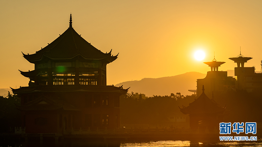 冬日里,云南省红河哈尼族彝族自治州蒙自市朝阳升起,摄影爱好者用延时摄影记录朝阳升起。迎着清晨的第一缕阳光,新的一天开始啦(摄于11月16日)。新华网发(曹凡喜 摄影报道)