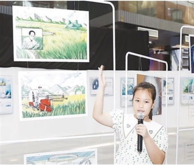 通过对城市老厂区现存工业建筑进行保护性改造,江苏南京晨光1865文化创意产业园已成为江苏省科普教育基地。图为中国当代重大科技成果科普图片展在此举办,一名小朋友在讲解。