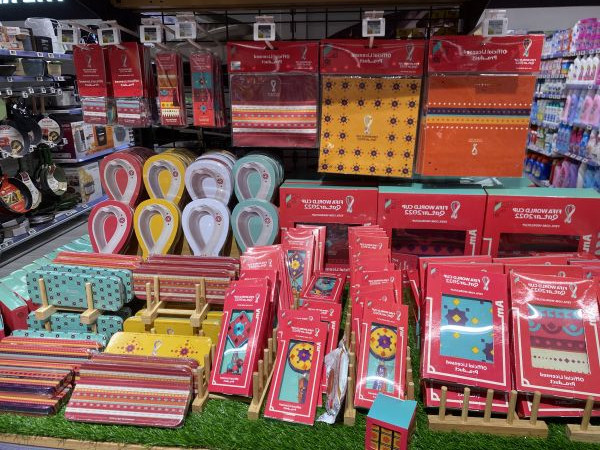 卡塔尔首都多哈一家超市售卖的世界杯周边商品(陶然 摄)