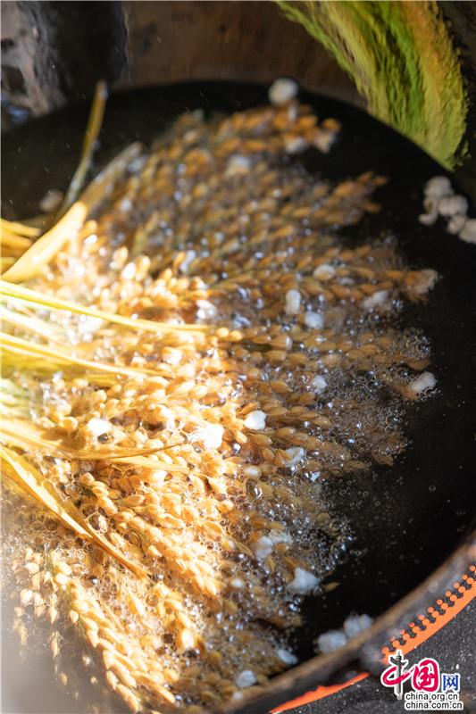 还可以试试在院子里炸“爆米花”,煤炉子,油锅子,稻穗就在锅里乐开了花,“噼里啪啦”一首交响。现炸的稻米,香个透底。