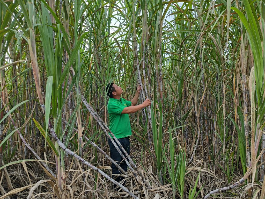 蔗农黄永军在查看自家的甘蔗长势。新华社记者郭轶凡 摄
