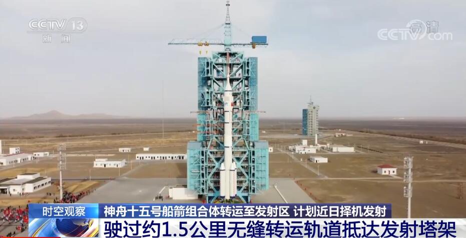据中国载人航天工程办公室消息,11月21日,神舟十五号载人飞船与长征二号F遥15运载火箭组合体转运至发射区,计划近日择机发射。目前,发射场设施设备状态良好。