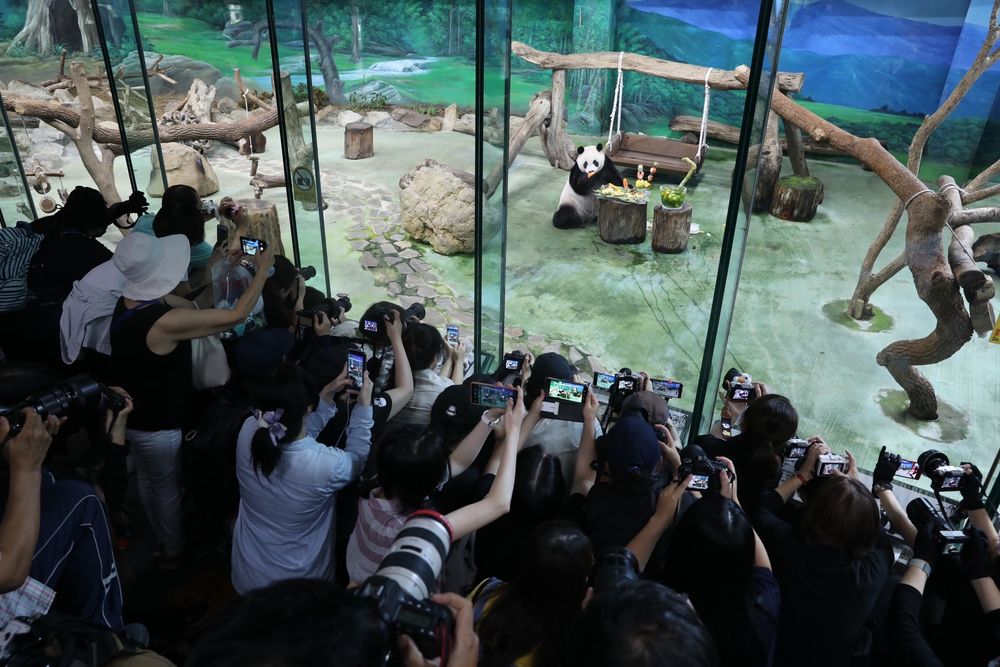 今年8月,台北动物园为“团团”庆祝了18岁生日。在园方公布的直播视频里,“团团”独享一个单层方形蛋糕,细嚼慢咽了好一会儿才把蛋糕掀翻,拿起上面充当蜡烛的甘蔗吃了起来。憨萌的模样逗乐了不少在线上观看庆生活动的台湾民众。