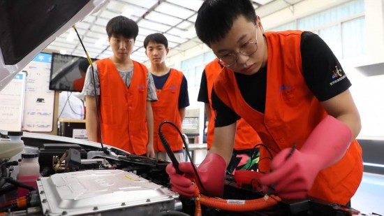 在深圳职业技术学院的汽车与交通学院实训室,大三学生宋明亮在与同学们学习汽车检测与维修原理。在这所高职院校,从5G无人驾驶汽车,到地铁驾驶舱、智能机器人,甚至企业没有面市的最新科研成果,都成为该校的教学样本。