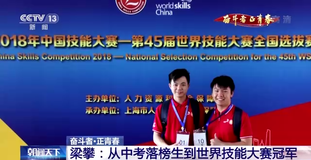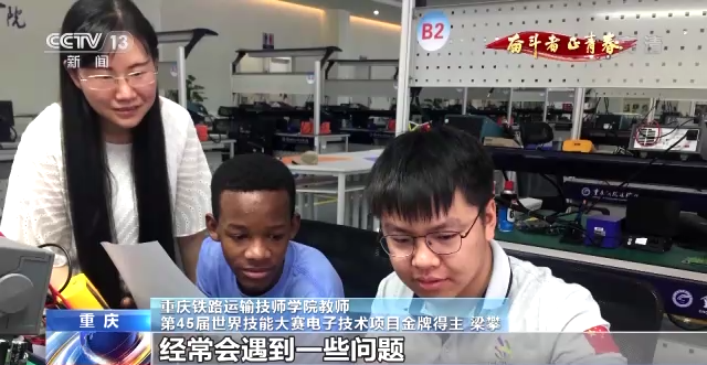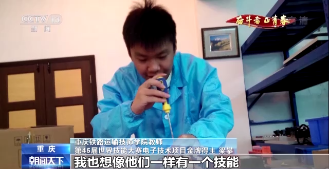 重庆铁路运输技师学院学生 朱政霜:跟着梁老师学习之后,我也发生了特别大的改变。他还得过世界冠军,就让我们感觉想自己再(把)青春豁出去再拼一把,比如说也拿一个冠军之类的。