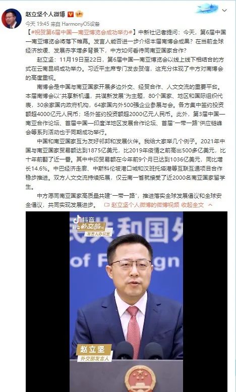 11月19日至22日,第6届中国—南亚博览会以线上线下相结合的方式在云南昆明成功举办。习近平主席专门发去贺信,这充分体现了中方对南博会的高度重视。