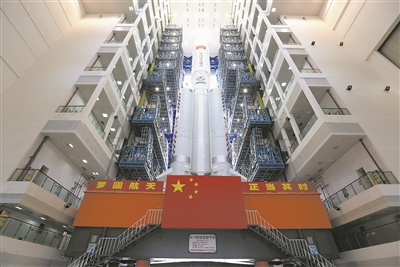 2022年10月,长征五号B运载火箭与梦天实验舱组合体等待垂直转运。屠海超摄