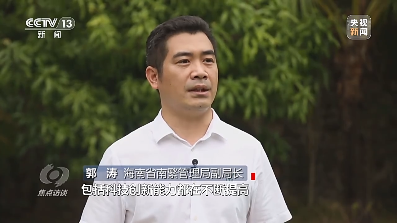 海南省南繁管理局副局长 郭涛:从杂交水稻、高产玉米、抗虫棉花等等,南繁的科技含量包括科技创新能力都在不断提高,杂交水稻育种技术已经处于世界领先水平。
