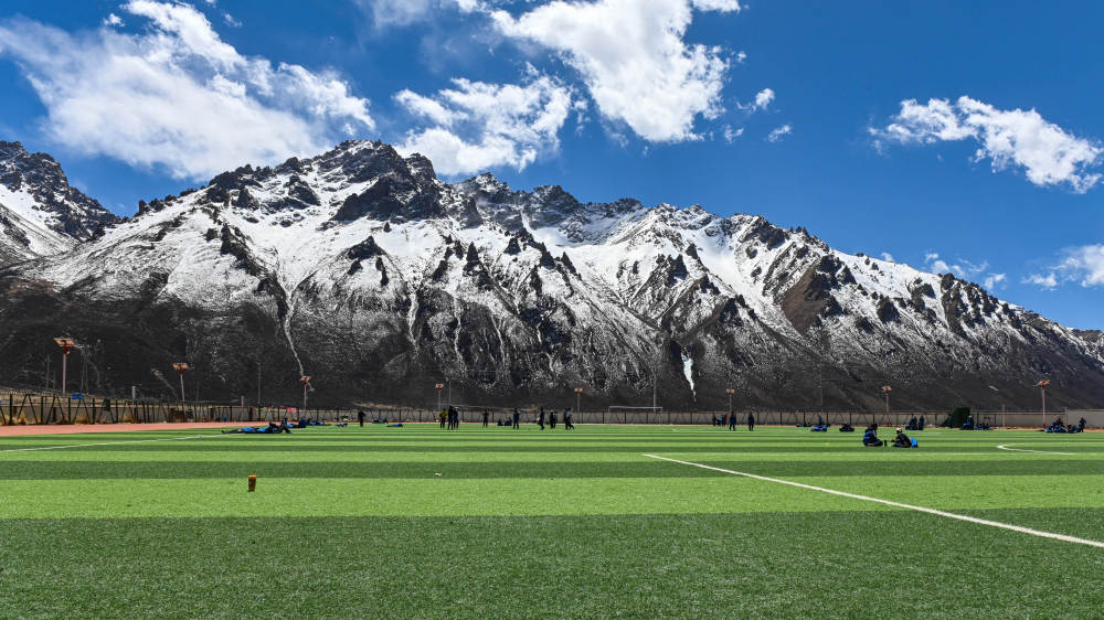 这是西藏那曲市嘉黎县中学的足球场(3月30日摄)。新华社记者 周荻潇 摄