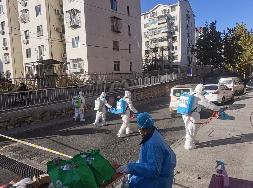 朝阳区志愿者积极主动参与封控区服务保障工作,除了运送生活急需品,还负责小区外围消杀工作,确保各项防控措施落细落实,不留死角。