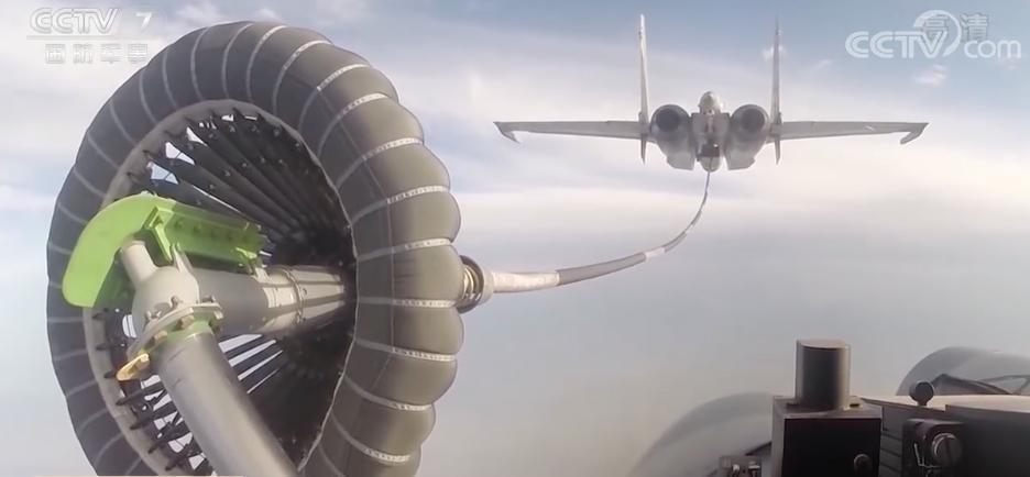 2021年,多批次歼-15舰载战斗机开展跨昼夜多课目编组对抗训练。战机空中 " 穿针引线 ",实施 " 伙伴加油 "。