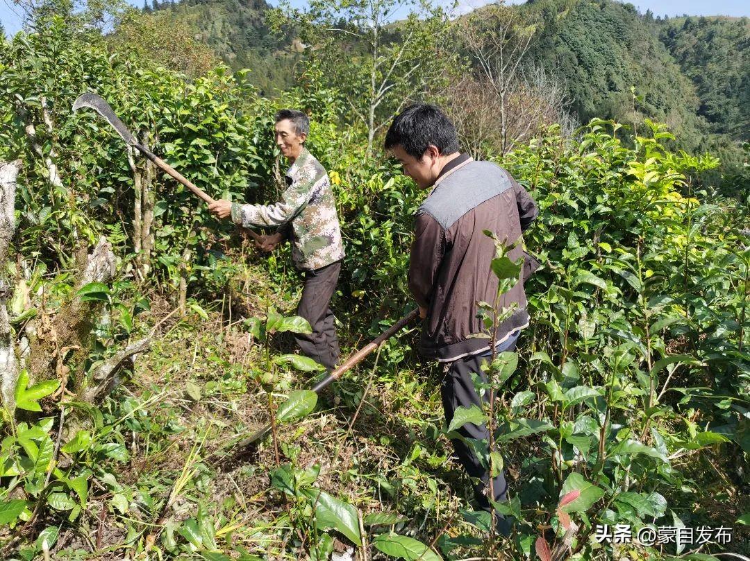 这几天,期路白苗族乡松树坡村委会石母底村的陆发林大叔一直忙碌在自家的茶园中,给茶园除草,给茶树修枝。陆发林告诉我们,他的茶园共有12亩,这些茶树都有60多年的历史,近20年来,由于没有人来收茶,也就没有进行管理,任其生长,最终茶园就变成了一片荒废的树林。2020年,村党总支引进了红河韵象茶叶专业合作社对茶园进行开发,他也加入了合作社,同时也能在合作社里工作。