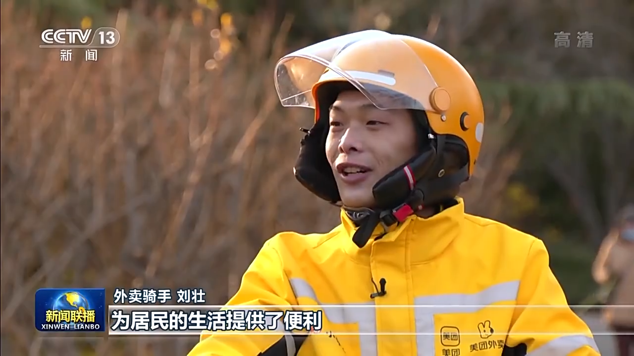 外卖骑手 刘壮:我每天走街串巷,为居民的生活提供了便利,同时我还获得了免费上大学的机会,实现了我继续学习的梦想。