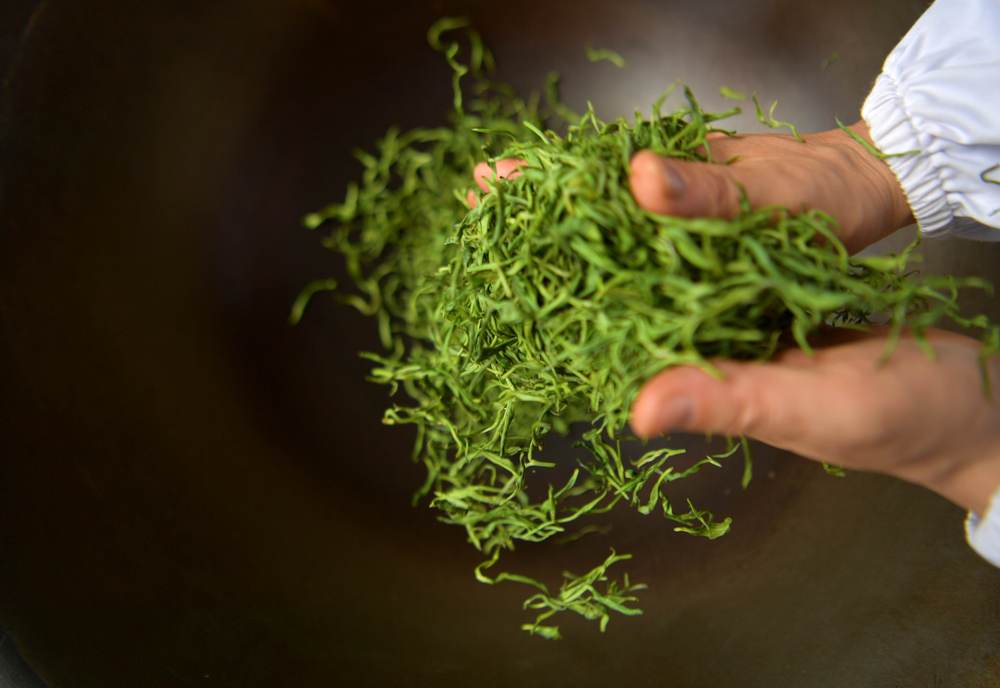 3月31日,制茶师(左)在四川省雅安市蒙顶山制作绿茶“蒙顶甘露”。新华社记者沈伯韩摄