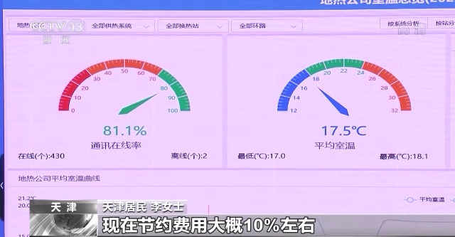 天津居民 李女士:现在地热供暖效果也比较好,而且也经济环保。和之前自己用天然气供暖(相比),现在节约费用大概10%左右。