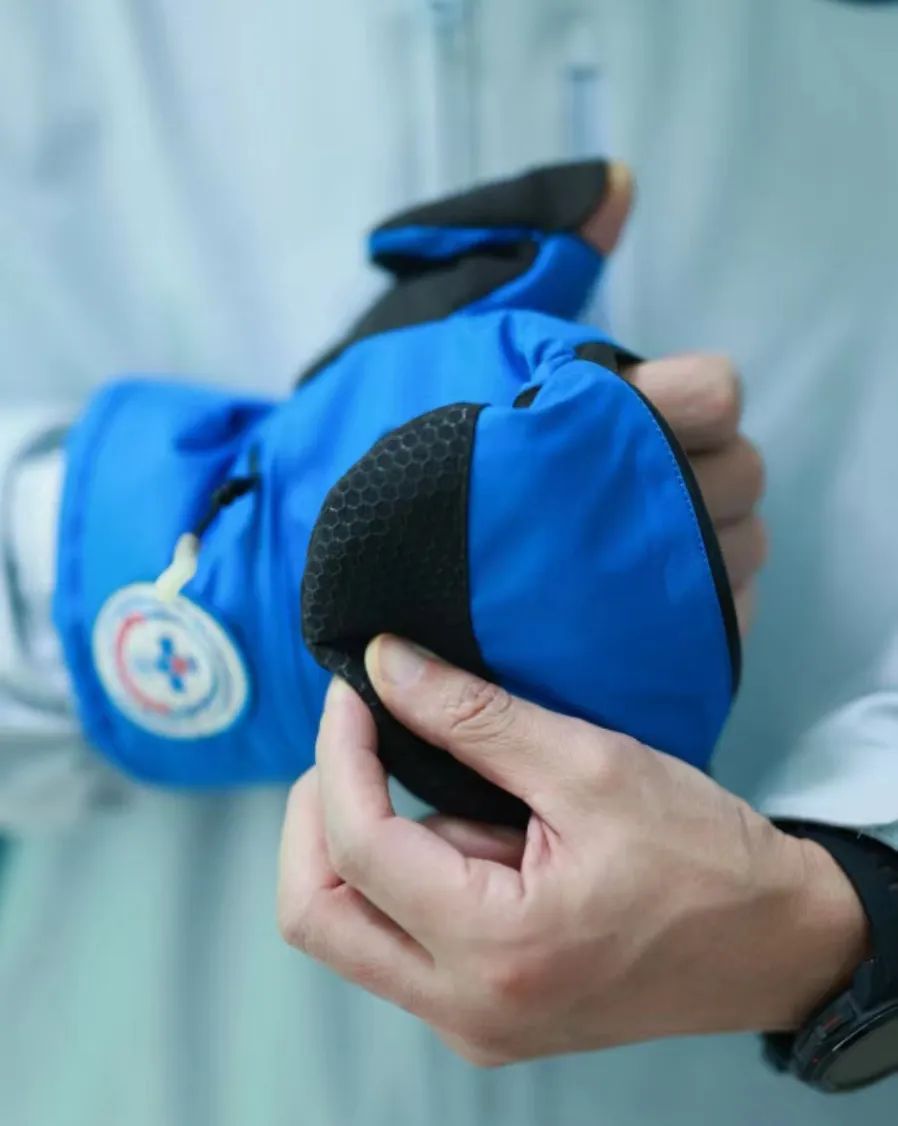 神舟十四号载人飞船计划于夜间严寒天气下返回东风着陆场,受地理条件以及气候因素的影响,低温状态给医疗救护人员开展各项工作带来了极大困难。为确保各项医疗救治顺畅精准,神舟医疗救护队设计并装备了“航天医疗专用低温防寒多功能手套”。