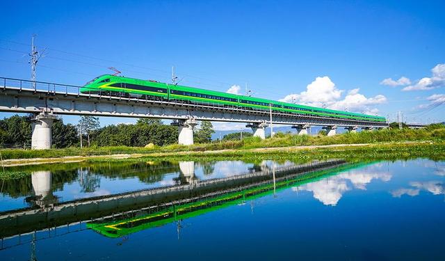 中老铁路中国段,复兴号动车飞驰在西双版纳州橄榄坝大桥上。 杨林摄