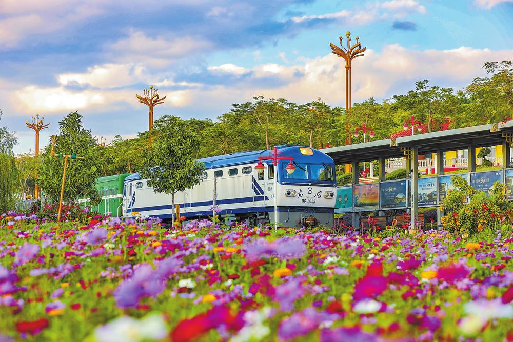 火车穿过开远市1909广场 本报通讯员 陶家淇 摄