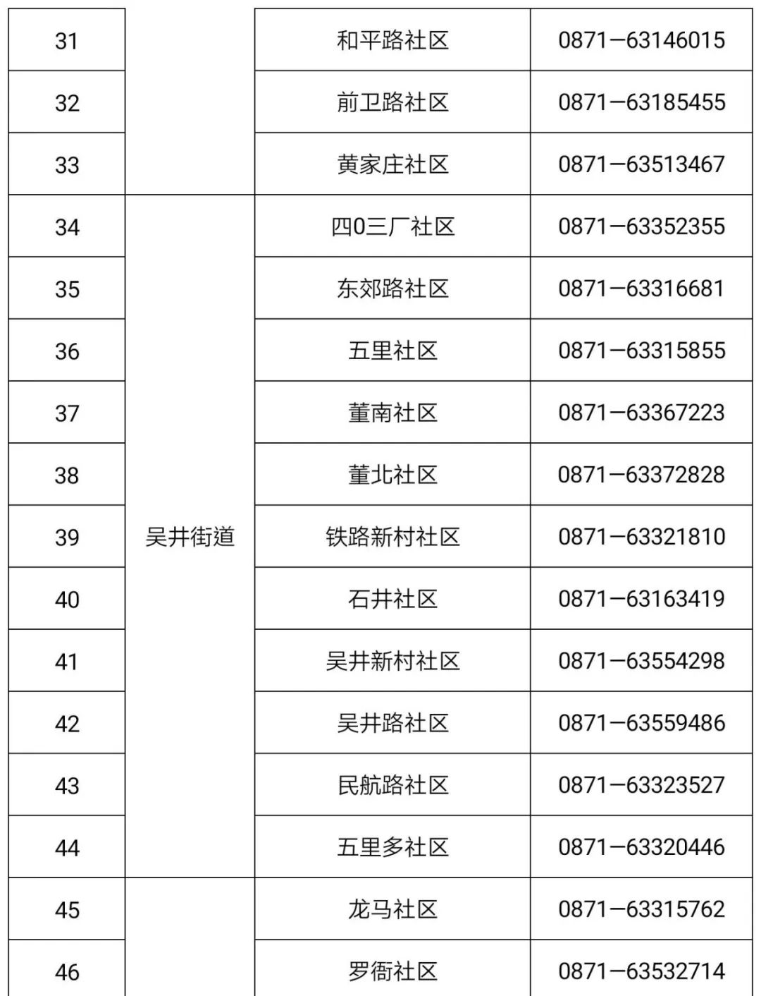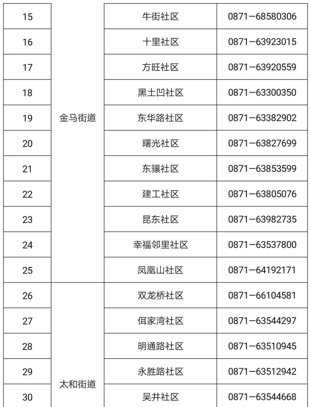 社区 | 拓东街道 | 明通巷 社区 | 0871-63187832 | 13618718537 | 08:00 -20:00 |