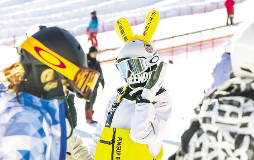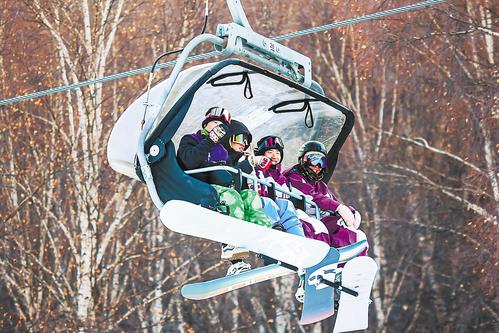 滑雪爱好者在山林环绕的雪场感受“冬奥小城”的魅力。