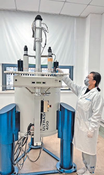 上海市张江药谷公共服务平台技术人员在操作核磁共振检测仪。孙 宇摄