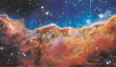 壮观的景象:韦布望远镜看到的船底座星云。图片来源:NASA、ESA、CSA 和STScI