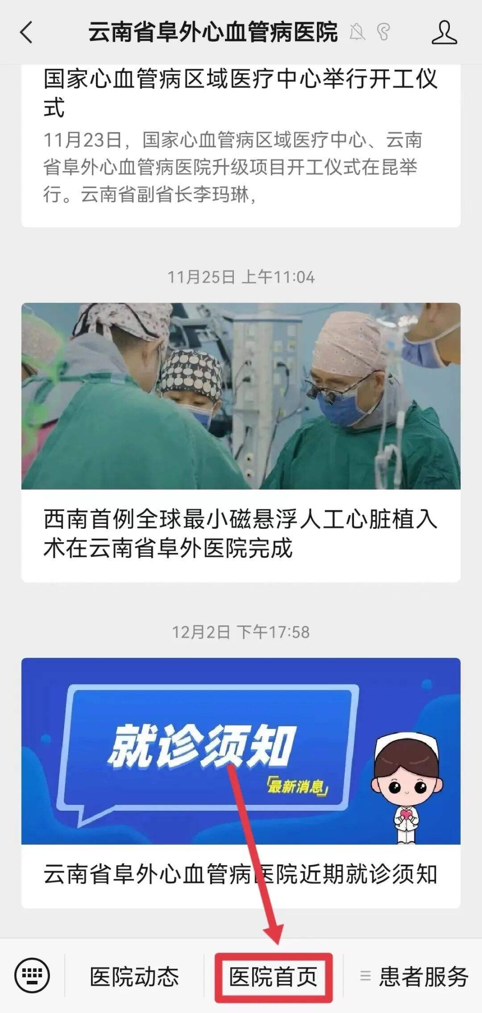 云南省阜外心血管病医院互联网医院就诊流程(微信公众号操作版)
