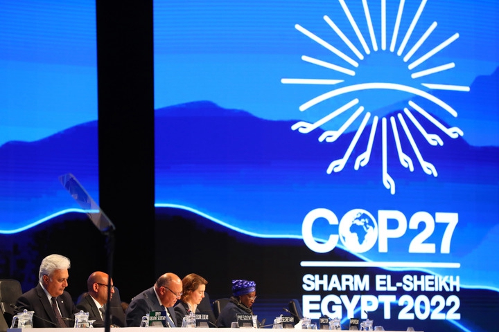 这是11月20日在埃及沙姆沙伊赫拍摄的《联合国气候变化框架公约》第二十七次缔约方大会闭幕会现场。新华社记者隋先凯摄