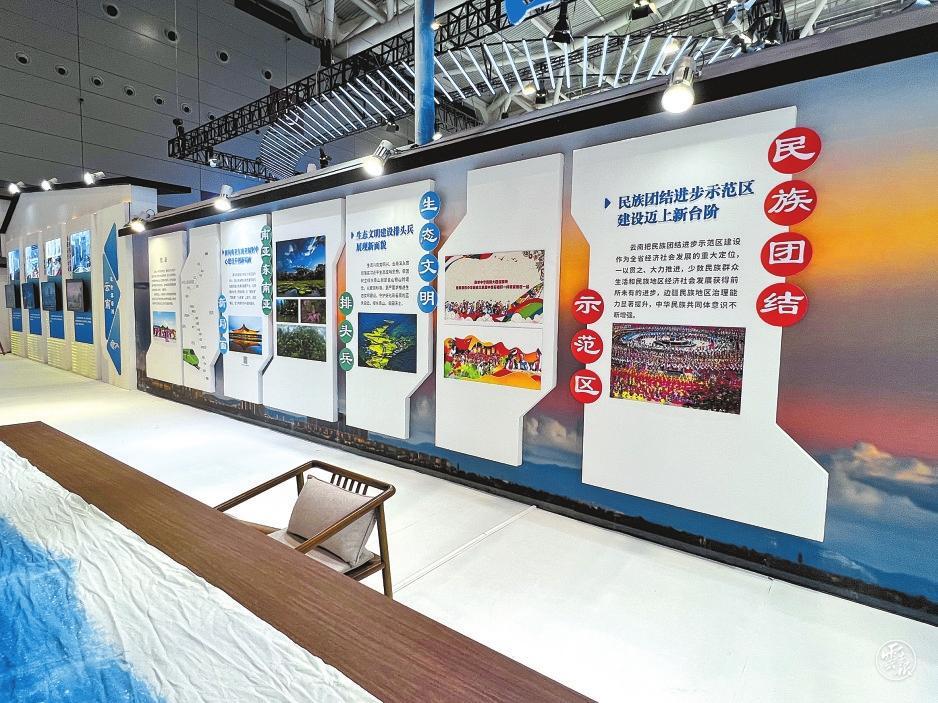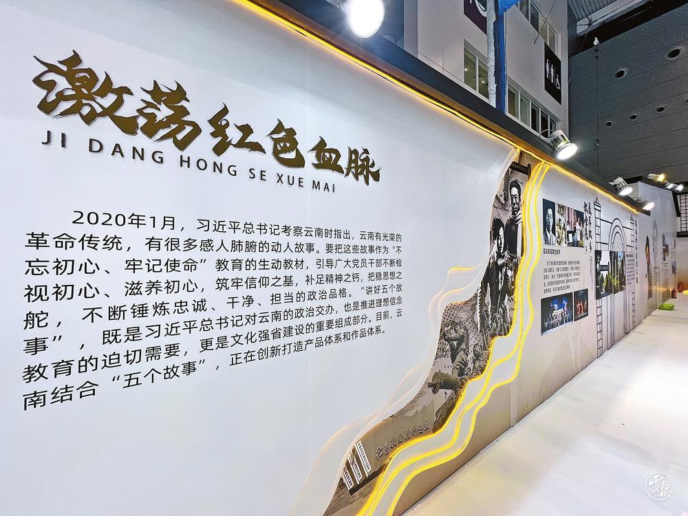 我省深入学习贯彻党的二十大精神,参展本届深圳文博会突出云南精品特色,集中展示党的十八大以来文化产业发展成就。“红色记忆”板块融入新媒体,讲述真实感人的“聂耳和国歌的故事”“西南联大教育救国的故事”“闻一多发表‘最后的演讲’、舍生取义的故事”“‘扎西会议’改组党中央的领导特别是军事领导、推动中国革命走向胜利新阶段的故事”“中央红军巧渡金沙江的故事”;“七彩云南”板块以直观图文数据,展现云南文化产业十年之变。