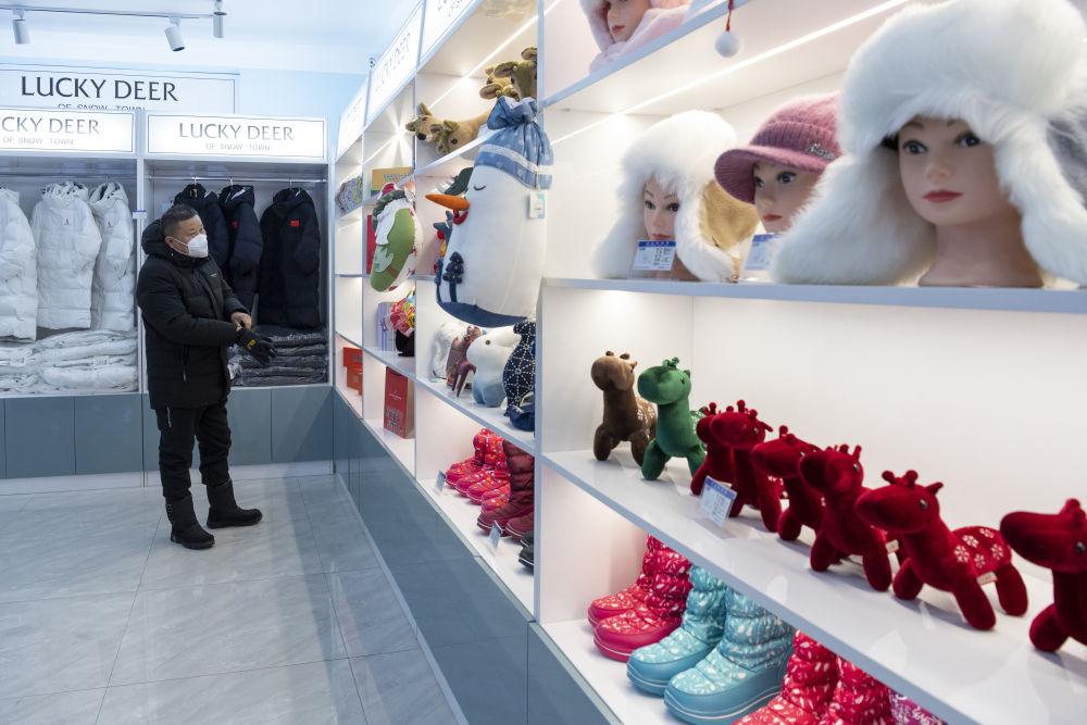 12月14日,游客在雪乡景区的一个旅游纪念品商店内选购。新华社记者 谢剑飞 摄