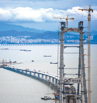 正在建设中的深中通道伶仃洋大桥。新华社记者 邓 华摄