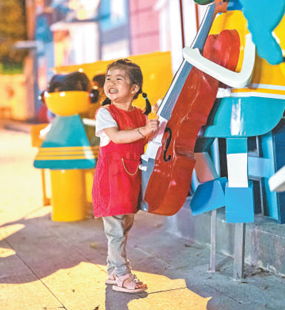 重庆大渡口区新山村街道,小朋友在改造后的社区广场玩耍。李洪波摄(影像中国)